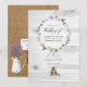 Invitación de boda de lavanda de algodón de granja campestre rústica diseñada para ser personalizada rápida y fácilmente según los detalles de su evento. Ideal para cualquier tema o boda de jardín. Ideal para cualquier tema o boda de jardín. El código QR en el reverso dirige a su sitio web de boda donde las personas pueden obtener más información y responder.