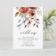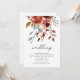 Invitación de Boda con Florales de Terracota Rústica con Letra Script. Agregar su código QR al sitio web de su boda en la parte posterior hace que esta sea una opción conveniente para que sus invitados respondan y vean todos los detalles sin necesidad de tarjetas de RSVP y detalles separadas. Un estilo informal elegante para el encabezado debajo de hermosas florales de acuarela. Personalice fácilmente con su información.