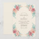Este diseño presenta un arreglo floral de rosas y rubor suave con delicado follaje de color verde azulado. Las flores de acuarela artística evocan una atmósfera romántica y ligera, perfecta para una serena reunión matrimonial.