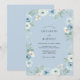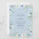 Un sereno arco de suave azul y flores cremosas adorna este diseño, acentuado por delicado follaje verde. La disposición romántica evoca una atmósfera suave y etérea, perfecta para una celebración sofisticada.