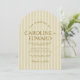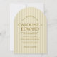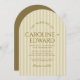 Invitación de bodas con arcos a rayas de lujo con elegante estética de dinero viejo. Diseño minimalista pero sofisticado en tonos beige y dorado, con una moderna opción de código QR en segundo plano. Perfecto para bodas de moda atemporales.
