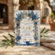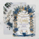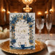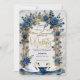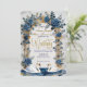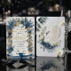 Establece un tono sofisticado para tu día especial con este diseño romántico que presenta cisnes en acuarela, flores azules polvorientas y elegantes acentos de falso oro.