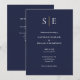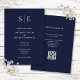 Esta elegante y minimalista invitación de boda azul marino y dorada se puede personalizar con las iniciales de tu monograma y la información de tu boda. Con los detalles de tu sitio web de boda y tu código QR en el reverso. Diseñado por Thisisnotme©