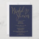 Esta sencilla invitación de boda con guión azul marino y dorado se puede personalizar con toda la información de su evento especial. Diseñado por Thisisnotme©