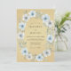Delicadas flores azul cielo y follaje verde suave están dispuestos artísticamente en una guirnalda fluida. Este diseño evoca una atmósfera caprichosa y etérea, perfecta para una ocasión romántica. El ambiente ligero y aireado se complementa con un fondo cálido y dorado.