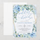 Invitación Boda con marco geométrico elegante azul y dorado