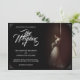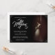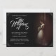invitación boda con la imagen de una novia soñadora inclinada frente a una pared con un ramo de flores blancas en la penumbra, de estilo clásico. Los nombres, el texto, la ubicación y la fecha se pueden personalizar en la plantilla.