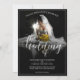 invitación boda con la imagen de una novia soñadora sentada con un ramo amarillo de flores en la penumbra, de estilo clásico. Los nombres, el texto, la ubicación y la fecha se pueden personalizar en la plantilla.