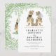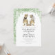 Delighta a tus invitados con esta divertida invitación de boda con tema de dinosaurios con divertidos novios T-Rex. Fácil de personalizar con los nombres de los novios, la fecha de la boda y todos los detalles del lugar de la boda en tipografía moderna. Ilustraciones divertidas de novios T-Rex en tonos marrones con follaje de la selva en tonos verdes. Arte de dino original y único de la artista Catherine Sweetman