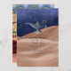 Esta encantadora invitación de boda se inspira en un tema de Oriente Medio o Las mil y una noches, perfecta para parejas que buscan agregar un toque de misterio y fantasía a su día especial. Con una lámpara mágica de genio situada en un paisaje desértico estrellado, el diseño evoca una sensación de asombro y aventura. Los ricos colores y la tipografía elegante crean una invitación sofisticada y memorable, ideal para bodas temáticas o celebraciones de destino con un toque exótico.