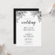Esta elegante y simple invitación de boda en blanco y negro cuenta con un marco floral en blanco y negro que rodea los detalles de su boda. Dé a sus invitados una primera y hermosa impresión de la boda que se avecina, esta tarjeta será un complemento fantástico para los eventos de su boda.
