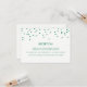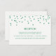 Un fondo blanco resalta los tréboles verdes que caen desde arriba como confeti, y el texto de aspecto moderno con la información de la recepción de su boda está en un tono de verde a juego.
