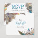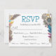 Boda con temática de steampunk RSVP. Engranajes metalizado de bonito, plumas turquesas y flores escondidas en un engranaje metalizado y baratijas.
