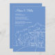 Invitación a la boda de Central Park. Boda de destino Nueva York, Invitación a la ceremonia de boda del Central Park Cop Ct gazebo. Azul con ilustracion de silueta blanca de esta popular ubicación en el boda de Central Park.