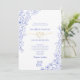Invitación Boda Corazón Dorado Floral Azul Chinoiserie