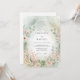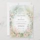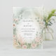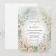 Este diseño muestra un lavado de acuarela fluido en tonos suaves de espuma de mar y arena, evocando la tranquilidad de la costa. Delicadas rosas sonrosadas y botánicas polvorientas de color rosa se emparejan con eucalipto de dólar de plata y ramas etéreas inspiradas en coral. La paleta suave de verde salvia y azul pálido crea un ambiente marítimo sofisticado. Es una opción ideal para un evento romántico junto al mar o en un destino lejano.