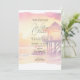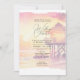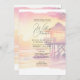 Invitación nupcial moderna con hermosa playa de atardecer.