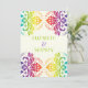 Colores arcoiris damasco invitación a la boda que presenta un motivo damasco con colores arcoiris sobre fondo marfil. Este diseño moderno y clásico es una plantilla y forma parte de un conjunto boda adecuado para una boda primavera, verano otoño con un tema arcoiris. Es personalizable y puede ser personalizado. Colores: rojo, naranja, amarillo, verde, azul, violeta violeta, marfil.
