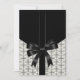 Elegante damasco de diseño blanco y negro con elegante cubierta negra, cinta adhesiva y arco.