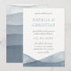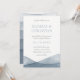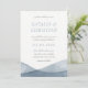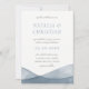 Borde de tinte de azul de acuarela de dip, invitación de boda. Estilo de diseño simple y moderno con tipografía polvorienta azul y gris coordinada. La parte trasera de la invitación presenta un patrón de acuarela azul sumergido coincidente.