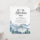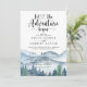 Elegantes montañas rústicas de acuarela y la invitación a bodas de la escena forestal, con frondosos árboles azules y verdes y montañas con un texto de guión: que comience la aventura. Para los que aman un romántico y soñador bosque, vivirán por su ceremonia y celebración. Para ver la colección completa de materiales coincidentes para este diseño, visite: https://www.zazzle.com/collections/rustic_forest_mountain_wedding-119965625201006103