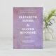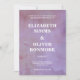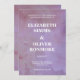 Crea una encantadora primera impresión con esta invitación de boda de ensueño, con un suave fondo de agua de lavanda con sutiles tonos ondulados. El diseño combina la tipografía serif clásica en blanco puro con un entorno elegante y etéreo que ofrece a cada invitación una calidad artística única. La disposición minimalista pone los detalles de tu boda en el centro, mientras que la textura romántica acuarela aporta un toque de brillo y sofisticación. Cada invitación incluye un sobre blanco y se puede personalizar con la información de su ceremonia, perfecta para parejas que buscan un diseño moderno con un toque romántico y artístico.
