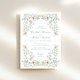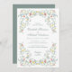 Elegante invitación a la boda, con ilustraciones acuáticos hechos a mano de naves ornamentales de vintage compuestos de vegetación y delicadas viñas con encantadores cantores amarillos y azules encaramados en el interior, creando un diseño caprichoso y refinado. Los nombres de la novia y del novio están en el clásico guión verde sabio y los detalles del evento están en letras verdes simples de salvia. Perfecto para parejas que abrazan la estética popular del milenio, mezclando el romance de una época pasada con un refrescante toque contemporáneo.