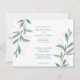 Sencillas y elegantes, estas invitaciones a bodas acuáticas son la manera perfecta de invitar a todos tus amigos y familia a tu gran celebración de primavera o verano. Presenta hojas florales verdes y doradas en el frente con texto verde. La parte posterior tiene un fondo verde sólido. Es perfecto para cualquier boda de primavera o verano.