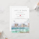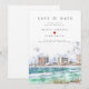 Invitación de boda de destino en Destin Florida | La invitación de Save the Date cuenta con una imagen de acuarela de Destin, Florida, con un hermoso corazón en el medio de los nombres de la novia y el novio. La invitación de boda Save the Date simple y elegante se puede personalizar fácilmente, y puede cambiar fácilmente los colores de la boda para el texto y el fondo.