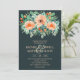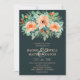 Elegante acuarela de flores en tonos melocotón a naranja adornada con un follaje verde verde azulado a jade sobre un oscuro fondo verde azulado con los detalles de la ceremonia boda en letras de melocotón pálido de moda. Una elección moderna pero sencilla para cualquier invitación a una boda de temporada. Cambie el fondo a cualquier color para que coincida con el tema boda. COINCIDIENDO elementos de nuestra colección.