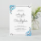 Flores azules delgadas adornan esta invitación a la boda de estilo rústico acuarela. Peronalizar este diseño cambiando el texto, el color del texto o el tipo de letra. Incluso puede agregar un color de fondo. El patrón azul acuático en el reverso es opcional. Disponible en otros productos bodas.