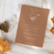 Simple. Minimalista. Moderno. Esta invitación de boda minimalista BOHO fue creada a partir de imágenes de acuarela pintadas a mano por la artista y diseñadora internacionalmente licenciada, Audrey Jeanne Roberts. Las flores silvestres secas cálidas y silenciadas se reúnen en un ramo suelto con una delicada mariposa y vegetación de hoja de Ginkgo. Esta versión tiene un frente de terracota con texto marfil y parte posterior de marfil. Derechos de autor.