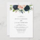 Invitación Boda de acuarela floral Rosa Navy Blue y Rubor