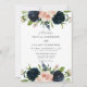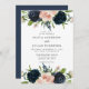 Invitación Boda de acuarela floral Rosa Navy Blue y Rubor