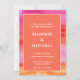 Asegúrese de que su suite de invitados a la boda es tan moderna y elegante como su gran día con este colorido diseño de color de agua tropical al atardecer o amanecer. La elección perfecta para una salida del sol en primavera o verano en el jardín o para un boda, los colores rosa y naranja aseguran una declaración. Solicite hoy mismo su suite de invitaciones para bodas y haga que su planificación de bodas sea un poco más sencilla.