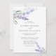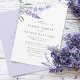 Invitación de boda floral de acuarela lavanda romántica con detalles en el reverso.