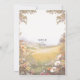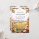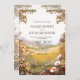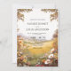 Una pradera dorada enmarcada con flores silvestres pintadas suavemente y ramas frondosas ofrece una romántica escena campestre, con una vista distante de la montaña y un centro claro para tus nombres y detalles. Este diseño acuático se siente cálido y natural para las parejas que planean una celebración al aire libre, desde una ceremonia de granero hasta una recepción en el jardín. Personalice la redacción en minutos, elija su papel y forma, y cree una invitación que se siente como la puesta de sol en un campo sólo para los dos.