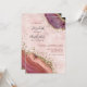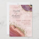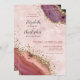 Invitación a la Boda Ageo de Oro Rosado con elegante diseño purpurina de oro y hermosos remolinos rosa y borgoña de mármol geodésico.