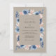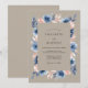 Este diseño presenta una paleta sofisticada de taupe, azul acero y melocotón suave. Anémonas pintadas a mano con acuarela y follaje delicado crean una atmósfera romántica. El fondo terroso proporciona un ambiente cálido y rústico perfecto para un evento inspirado en el bohemio. Los pétalos azules profundos contrastan hermosamente con los tonos neutros apagados.