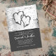 Invitaciones a bodas de ladrido en blanco y negro. Dos corazones se tallan en un árbol y forman la mitad superior de esta invitación. La parte inferior es de color negro sólido con plantillas de texto blancas. Perfecto para una pareja que quiere una ceremonia rústica al aire libre, el texto es fácil de personalizar para cualquier tipo de evento matrimonial. Revertir también es una imagen de árbol de abedul.