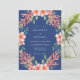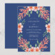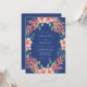 Un hermoso diseño de arco floral presenta vibrantes ramas de coral entrelazadas con suaves flores de durazno sobre un fondo de navy profundo. Esta disposición caprichosa evoca una romántica oceánica, perfecta para una celebración costera o de destino.