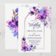 Invite a sus amigos y seres queridos a su boda con esta elegante invitación a una boda en arco floral morado.