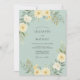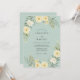 Este diseño presenta un sereno fondo verde menta adornado con delicadas flores y follaje. Flores blancas cremosas y amarillas suaves se desvanecen en un arco suave, acentuadas por un verde difuso. Evoca un sentimiento de elegante naturalidad y paz.