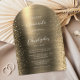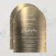 Esta elegante invitación a las bodas moderna en forma de arco tiene bordes dorados purpurinas. El texto del personalizable combina la escritura a mano en blanco, las fuentes de copperplate y cursiva en un fondo metalizado de imitación de color dorado. En el lado inverso hay un purpurina a juego y un diseño metalizado cepillado.