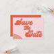 Boda del Arco Rojo Rosado Retro Guardar la tarjeta postal de fecha Rosa y rojo guardar la tarjeta de fecha con un bonito encabezado de tipo de letra retro con una sombra de gota marrón. Este diseño presenta los detalles de la parte posterior en color rosa sobre un fondo rojo.