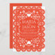 Invitación Boda de arte popular blanco Naranja Papel Picado d