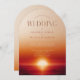 Disfrute de la belleza de una puesta de sol italiana con esta impresionante invitación a una boda estilo arco. Con un gradiente cálido de terracota, oro rosa y tonos suaves, este elegante diseño le aporta un toque de romanticismo mediterráneo a su día especial. Con una refinada tipografía serbia y una forma de arco única, esta invitación ofrece un lujoso y moderno ambiente, perfecto para una celebración memorable.