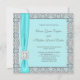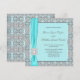 Elegante invitación de boda de azul teal con encaje plateado. Agregue sus datos en la parte delantera y trasera al añadir los detalles del evento, estilo de letra, tamaño y color de la letra, y redacción. Tenga en cuenta que todos los diseños de invitaciones que encontrará en Zazzle son gráficos impresos en papel liso sin joyas, lazos, relieve, estampado o piezas añadidas.