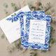 Vintage Talavera Azulejo azulejos mediterráneos azules y blancos todo en una sola invitación a boda plantilla editable descarga digital instantánea, todo en una sola tarjeta de invitación a la boda con detalles del boda y QR rsvp al fondo