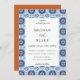 Hermoso patrón de marco de azulejos españoles geométricos azul y óxido, invitación de boda. La parte trasera de la invitación presenta un color óxido de moda sólido. Los estilos de fuente y el color se pueden personalizar.